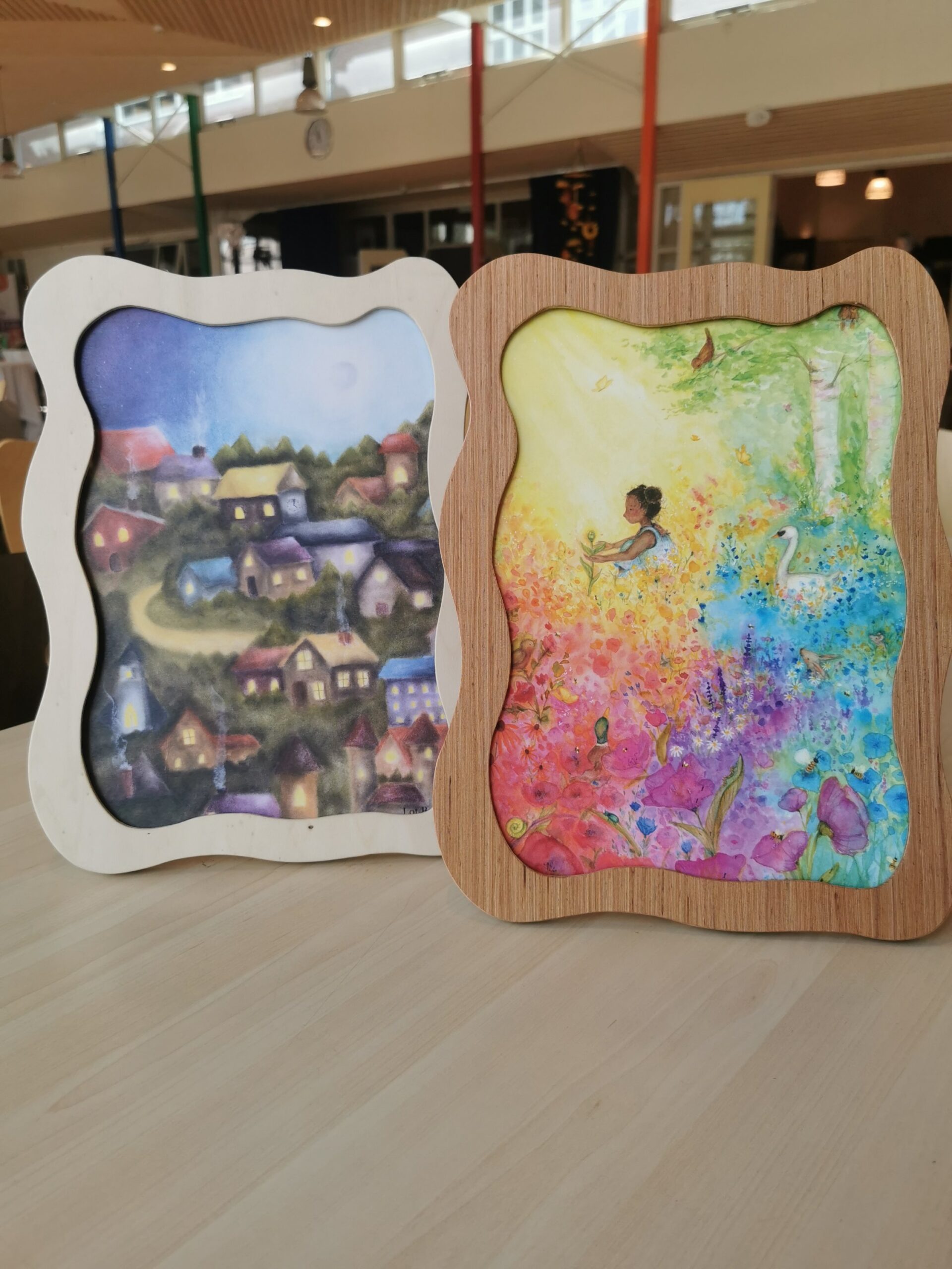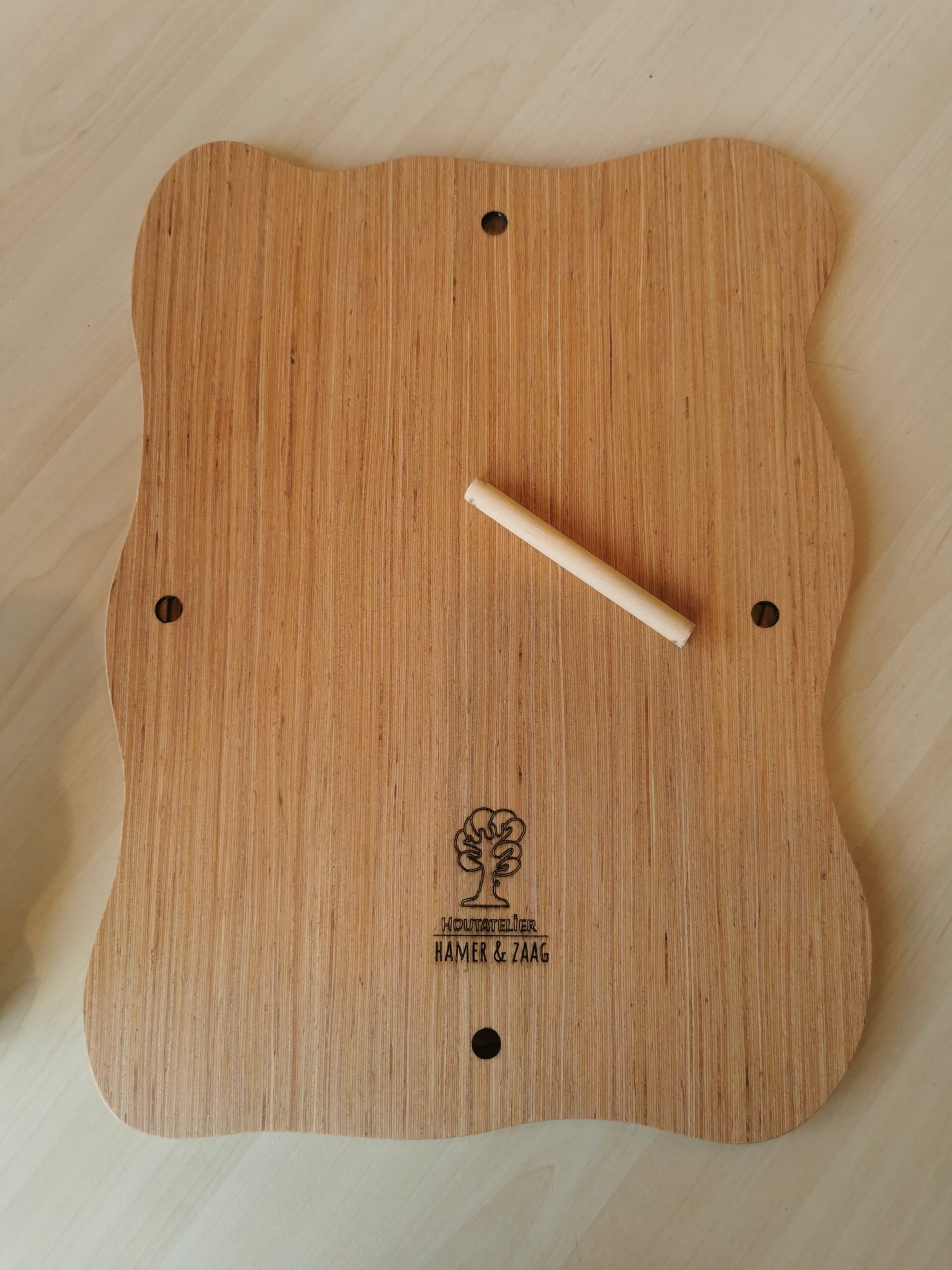 Deze A4-lijst is gemaakt van licht populieren multiplex of donkerder fsc hardhout multiplex. De organisch gevormde randen geven het een zachte, natuurlijke uitstraling die past bij de sfeer van de antroposofie.