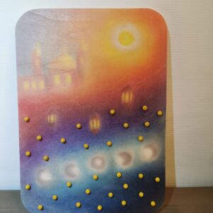 De ramadankalender is ongeveer 30 cm hoog en ongeveer 20 cm breed. Aan de achterkant zit een haakje zodat je de kalender kan ophangen. De losse balletjes komen in een handig zakje. U ontvangt de kalender zoals op foto 2, geen extra decoratie.